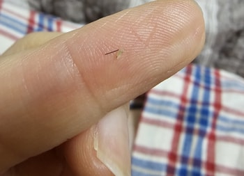 私が見るにはかさぶたや蛙の卵が落ちて髪の毛だけ一緒に抜かれたり切れたりしたようですが