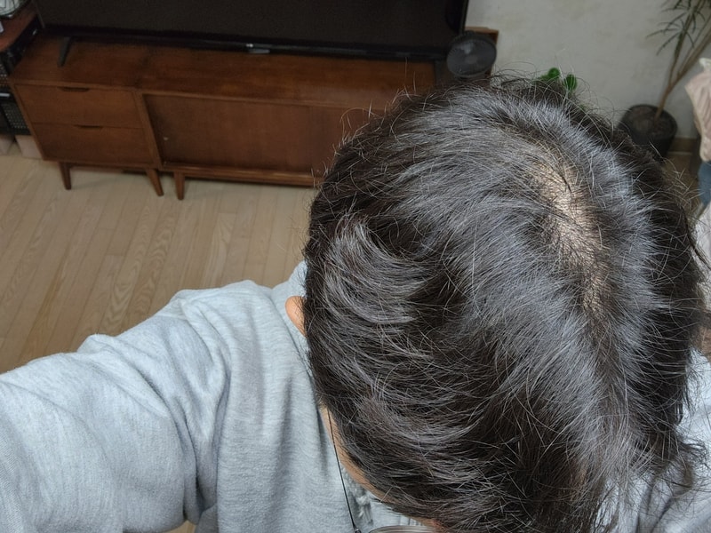 ドラマチックな変化とは言えませんが、ヘアミラクルを使う前の頭頂部の写真と比べてみると、それでもそれなりにびっしり(?)した感じがあります。