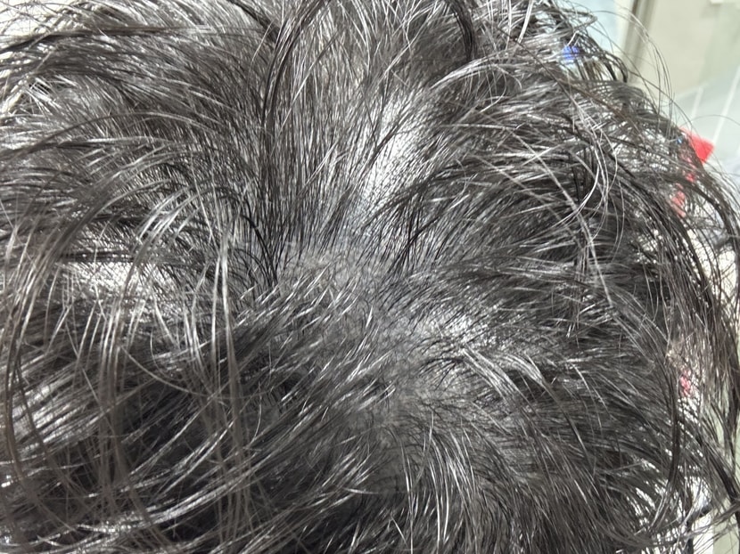 後頭部を採取したあとの弱いかゆみ前髪はかゆみがないが、赤い頭皮が持続