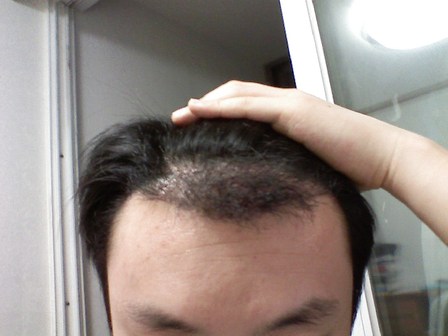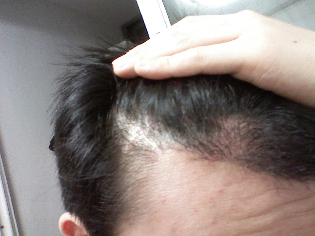 右側は最初から右側の横の髪とつながるところまで植えずに途中で手術して触ったようだ..