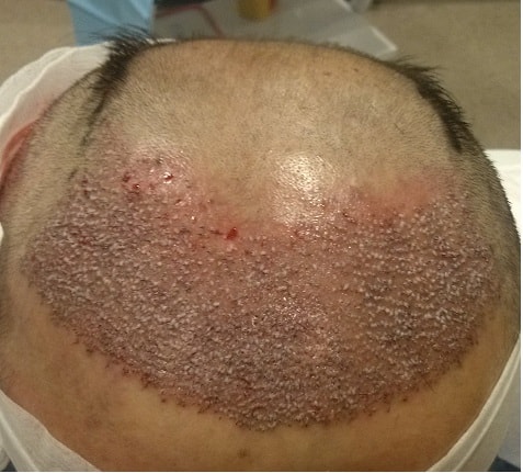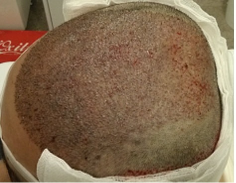 4. 初日(前の部分に集中-髪の毛が全くないところを一言でただ皮膚に植えたもの)