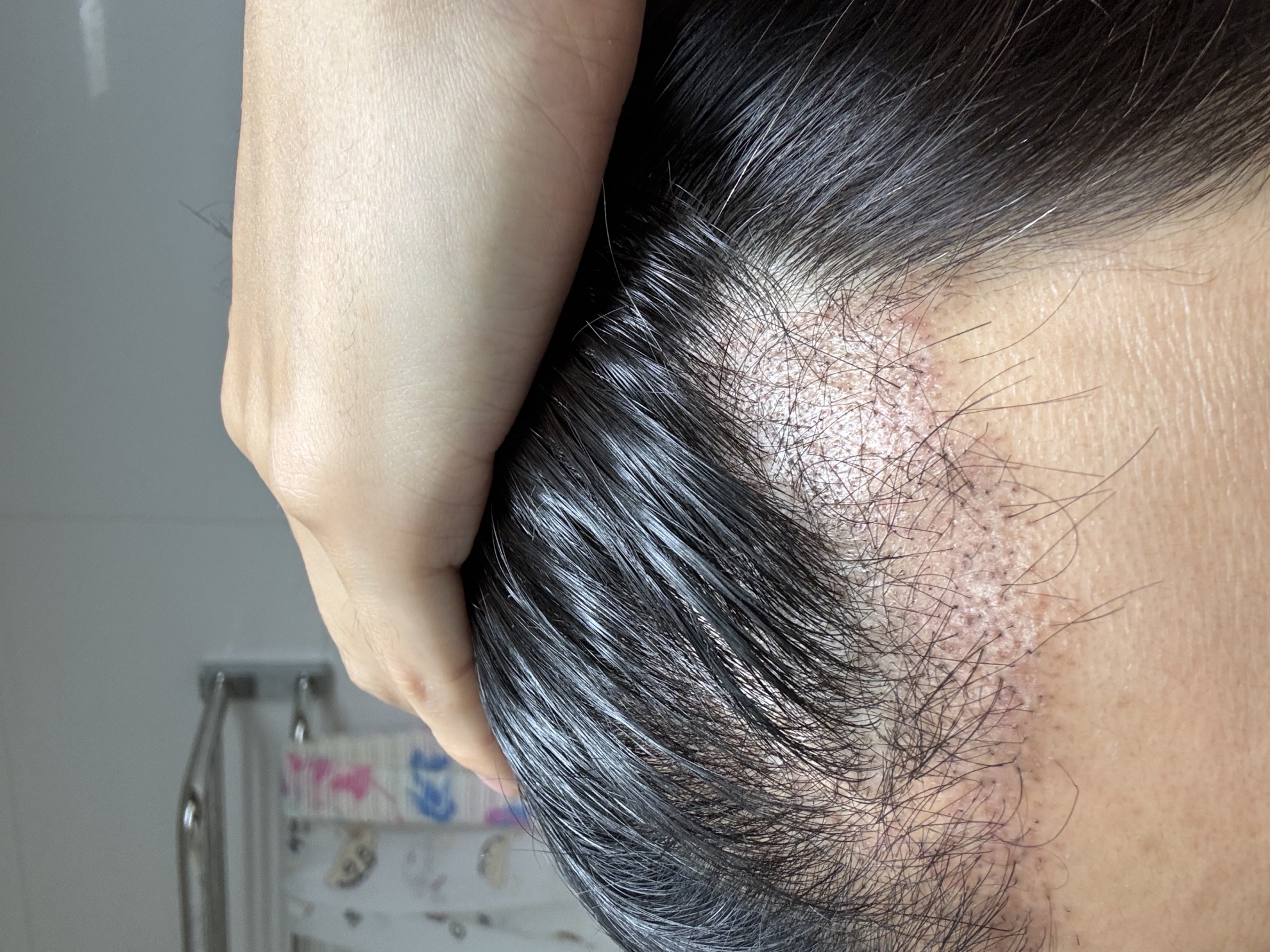 脱落したところに毛髪が部分的にすでに