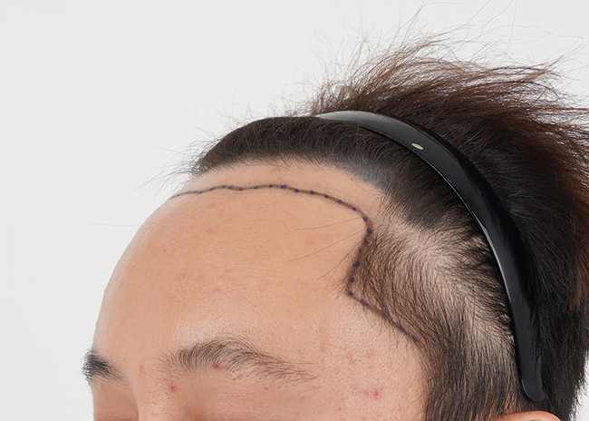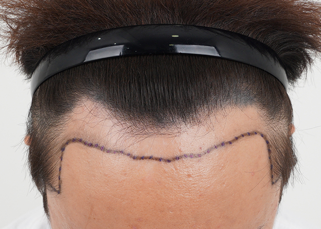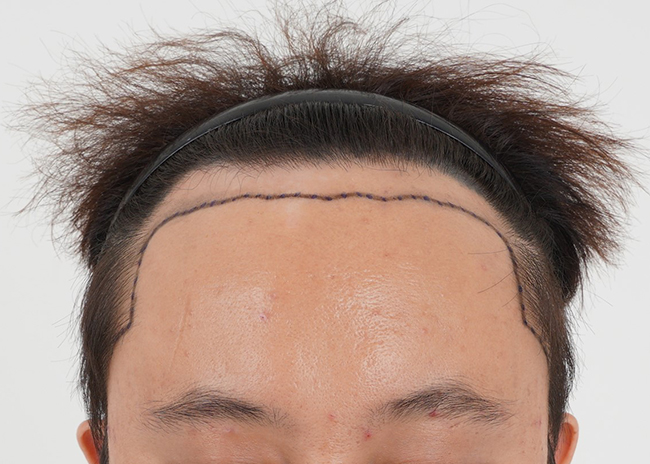 薄毛のせいで、M字に押されて真ん中も押されて額全体がすごく広くなったんですが、手術しようと相談しながらできるだけラインを下げることをお願いしたんですが、これも思い通りにできないことでした。一度にたくさん下げるとぎこちなくて密度が落ちることもあるので、院長ができるだけ下げられる部分まで下げて、後で2次でもう一度手術することをお話ししてくださいましたが、まず1次で手術の結果はとても良いです。