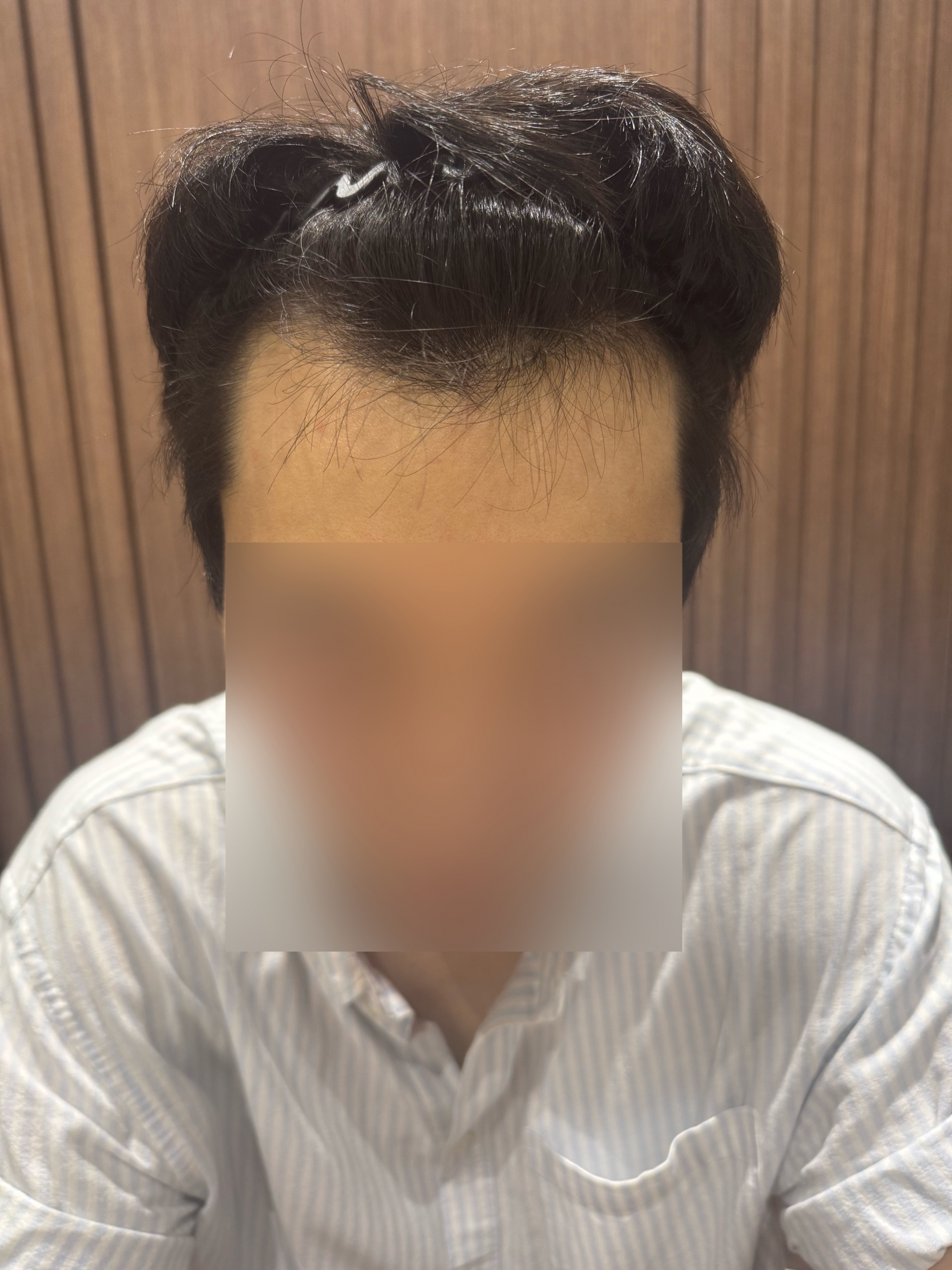 そっと髪を洗ってあげながらよく耐えました。 クリニックで指の腹でシャンプーを受けたら、ご覧のように 今は肉眼でよく確認できますね。 生着もよくできているし密度も上がってとても良いです