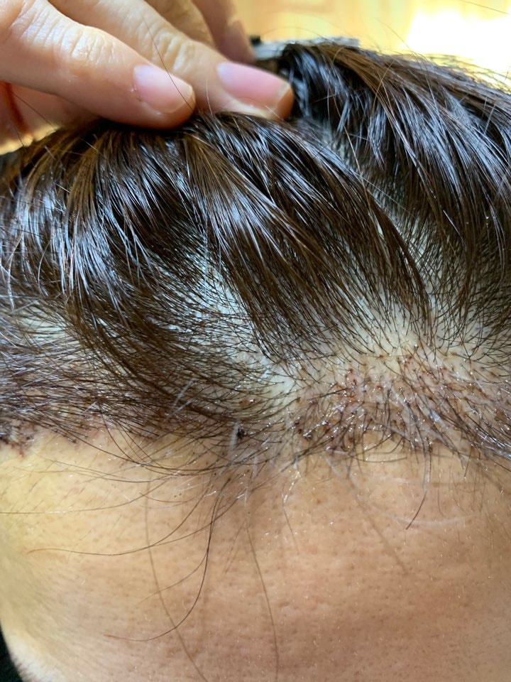 幼い頃から髪の毛が多くなくて結局モ植毛決定するようになりました。 一生懸命情報を検索して、最終的に2か所を絞り、相談を受けました。 毛多兀病院を選んだ理由は2つありました。 一つ目は、ヤン·ユグン院長のご相談が気に入りました。 他のクリニックでは、3600毛+@を移植する必要があるとして、当日の予約に対するプレッシャーがありました。 しかし、毛多兀病院ではヤン·ユグン院長が、既存の私が持っている毛髪の密度などを考慮した時、2600本程度で十分だと言いました。 そして、相談を受けるまで、私は絶対に非切開をしなければならないと思っていました。 ところが院長は私の後頭部の毛髪状態を確認して、その後もう一度毛髪移植する頭を残しておくために切開を提案してくれました。 クリニックの立場では非切開の方が良かったと思いますが、切開を提案してくださったのは患者のための言葉だったという気がして信頼できました。二つ目は、ヤン·ユグン院長から植毛を受けた体験談で密度がとても良かったという点です。 私が見た他のクリニックのレビューより、ヤン·ユグン院長から植毛を受けた患者さんの移植頭の密度が非常に細かくなっていました。 レビューを見て院長が既存の髪に怪我をせずに頭頂部植毛ができそうだという信頼感が生じました。そのように植毛を受けた結果は以下の通りです。 手術は大体3時間30分くらいかかったと記憶していて、切開する前の少しの睡眠麻酔、そして植毛、前移植部位の局所麻酔のための睡眠麻酔のおかげか、朦朧とした状態で思ったより早く過ぎていきました。 ところで、私が脂漏性頭皮炎がとてもひどいのですが、頭頂部の一部に脂漏性頭皮炎が残っているせいか、手術中に少し痛い感じはありました。 でも、ほとんどの部位は頭をトントン叩く感じで、少しずつ居眠りしていました。手術当日は、一日、終日麻酔薬に酔っていたようです。 (17時くらいまで? 椅子にもたれかかったままちょっと寝たので回復しました。)そして手術1日~3日目までは腫れが雪まで降ってきて朝ちょっと目の周りが不自由だ?という感じがありました。 私は面倒なので、手術後にもらった氷の湿布パックをしていませんでしたが、もしやっていたらこんな現象はないと思います。 そして不思議なことに、切開部位や移植部位はあまり痛くなく、少し引っ張られる感じだけがありました。 消毒薬をする時も全然痛くなかったです。もう9日目ですが、早く6ヶ月くらい経ってどうなっているか気になりますね