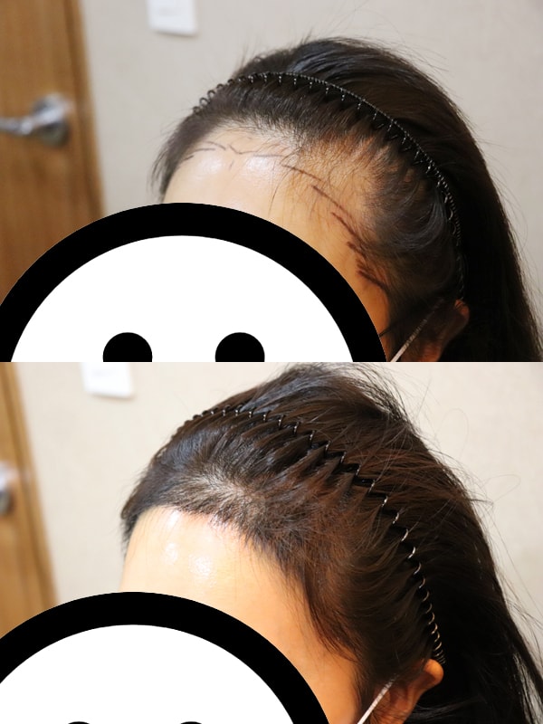 最初から院長先生が説明してくれました。 ただ、他のクリニックのようになるかできないか、簡単におっしゃってくださるかと思いましたが、なぜ髪の毛が抜けるのか、なぜ薄くなるのか、説明してくれました。 他の病院では私の髪が白髪が多いだけで、植毛ができないと言っていましたが、キム院長はどこができない、どこができると言ってくれました。 それで分け目ラインはだめで隣にm字を1100本植えることにしたが母数が少なくて最初からドラマチックな結果はないだろう していただいたせいか、私は1ヶ月目のこの程度でも非常に満足しています。 いつも横が空いてて すごくストレスだったんです 髪を結ぶ時も気をつけて。 写真上では大差ないように見えますが、知人が髪の毛が多く見えると言って満足しています。 これからは髪も自信を持って結びます。 手術は全然痛くなかったです。 手術後にヘルメットをかぶったような感じが長引いて心配しましたが、私はその翌日すぐに解けました。 最初から最後まで院長先生がすべて説明してくださって看護師さんたちも皆親切で信じてよくしました。 ショックロスも無事に過ぎ去ってほしいです!!
