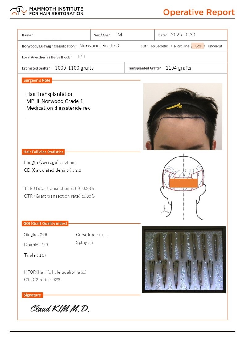 [頭皮タトゥー] 釜山マンモスヘアラインクリニック 植毛スリット方式 手術後記