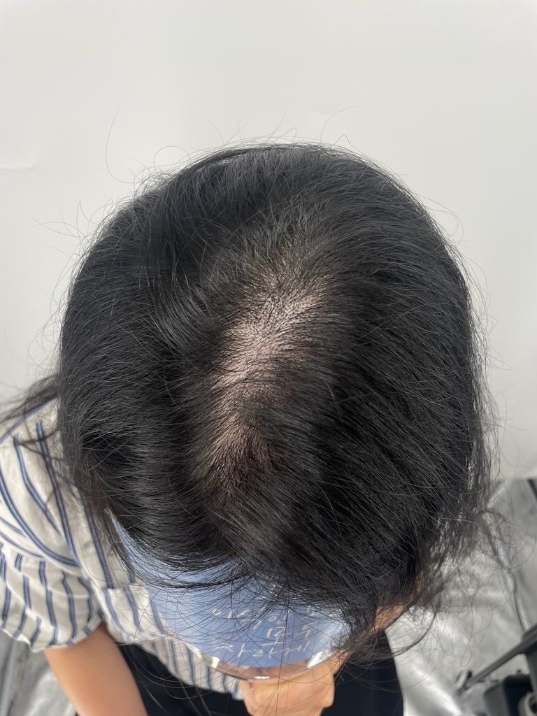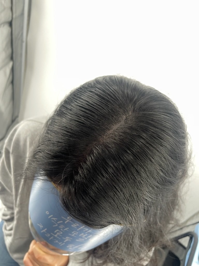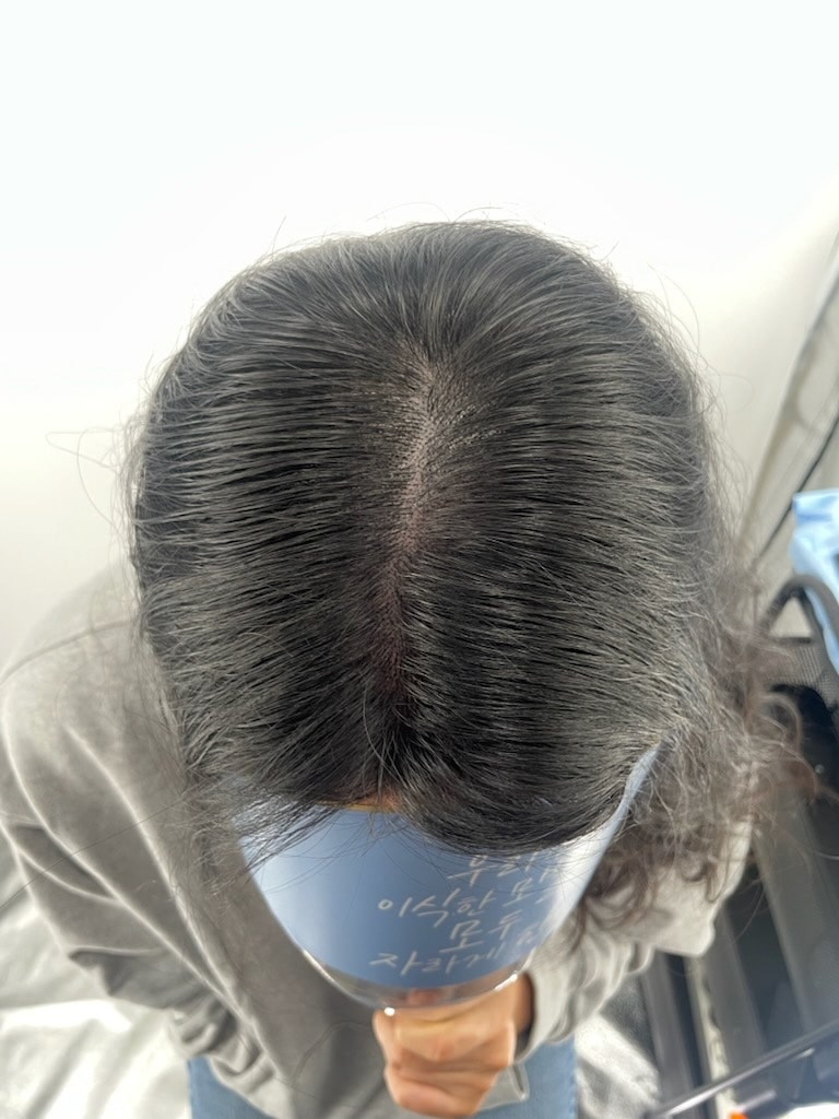 いつからか頭頂部の方がだんだん薄くなるのが鏡を見るたびにとても気になるんです。 前髪やMM字、全部頭頂部は本人が見るより周りの人が先に気づく場合が多いので、避けるよりぶつかった方がいいと思い、勇気を出して病院のクリニック談を受けてみました。 相談前に撮った写真を拡大してみたら、思ったより面積がかなり広く、全体的に髪の毛が薄くて密度が低いとおっしゃっていました。 院長が頭皮の状態を詳しく見ながら、頭頂部の方は生着率自体は良い方ですが、面積が広い場合には2000毛だけでは考える豊かな感じを出すのが難しいと説明してくれました。 最初は2000本だと結構多いんじゃないかと思ったんですが、実際には頭頂部全体をカバーするには足りないかもしれないとおっしゃっていました。 そして決定的に、私の後頭部の状態が少し薄くて密度が低いので、あまりにも無理に多くの量を採取するのは難しいかもしれないとおっしゃいました。 それで院長がおすすめしてくださった方法が、頭頂部2000毛の移植と毛包幹細胞治療の並行でした。 毛包幹細胞治療は、既存の毛髪の成長環境を改善し、移植された毛株、生着を助ける役割をするそうです。つまり、移植をしながらも残っている髪の毛を最大限生かす方向で治療を並行するのです。 相談の中で一番良かったのは、単にもっとたくさん植えようというのではなく、私の毛髪状態と頭皮環境を考慮して現実的な方法を提示してくださったという点でした むやみに大量を植えるより、生着率と毛質の改善を一緒に考慮するのが結果的にはるかに自然で効率的だという説明が理解できました そのように植毛、毛包幹細胞の注射治療を受けることになり、すでに治療を始めて1年が経ちました。 治療を受ける時、髪がいつ上がってくるのかと思いながら毎日鏡だけ見ていましたが、1年が経つとこんなにぎっしりした髪になって改めて嬉しいです