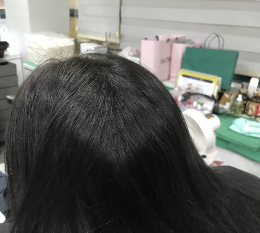 いつからか頭頂部の方がだんだん薄くなるのが鏡を見るたびにとても気になるんです。 前髪やMM字、全部頭頂部は本人が見るより周りの人が先に気づく場合が多いので、避けるよりぶつかった方がいいと思い、勇気を出して病院のクリニック談を受けてみました。 相談前に撮った写真を拡大してみたら、思ったより面積がかなり広く、全体的に髪の毛が薄くて密度が低いとおっしゃっていました。 院長が頭皮の状態を詳しく見ながら、頭頂部の方は生着率自体は良い方ですが、面積が広い場合には2000毛だけでは考える豊かな感じを出すのが難しいと説明してくれました。 最初は2000本だと結構多いんじゃないかと思ったんですが、実際には頭頂部全体をカバーするには足りないかもしれないとおっしゃっていました。 そして決定的に、私の後頭部の状態が少し薄くて密度が低いので、あまりにも無理に多くの量を採取するのは難しいかもしれないとおっしゃいました。 それで院長がおすすめしてくださった方法が、頭頂部2000毛の移植と毛包幹細胞治療の並行でした。 毛包幹細胞治療は、既存の毛髪の成長環境を改善し、移植された毛株、生着を助ける役割をするそうです。つまり、移植をしながらも残っている髪の毛を最大限生かす方向で治療を並行するのです。 相談の中で一番良かったのは、単にもっとたくさん植えようというのではなく、私の毛髪状態と頭皮環境を考慮して現実的な方法を提示してくださったという点でした むやみに大量を植えるより、生着率と毛質の改善を一緒に考慮するのが結果的にはるかに自然で効率的だという説明が理解できました そのように植毛、毛包幹細胞の注射治療を受けることになり、すでに治療を始めて1年が経ちました。 治療を受ける時、髪がいつ上がってくるのかと思いながら毎日鏡だけ見ていましたが、1年が経つとこんなにぎっしりした髪になって改めて嬉しいです