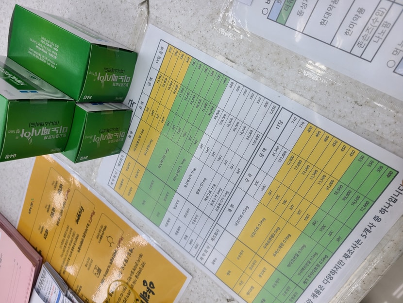1年分をもらおうとしましたが、ミノペシアなので1ヶ月足りないのが引っかかったりもします。 1粒当たり350ウォン、380ウォンなので、30ウォンの差も1年を貯めるので1万ウォンを超える金額であることもかかりますし。