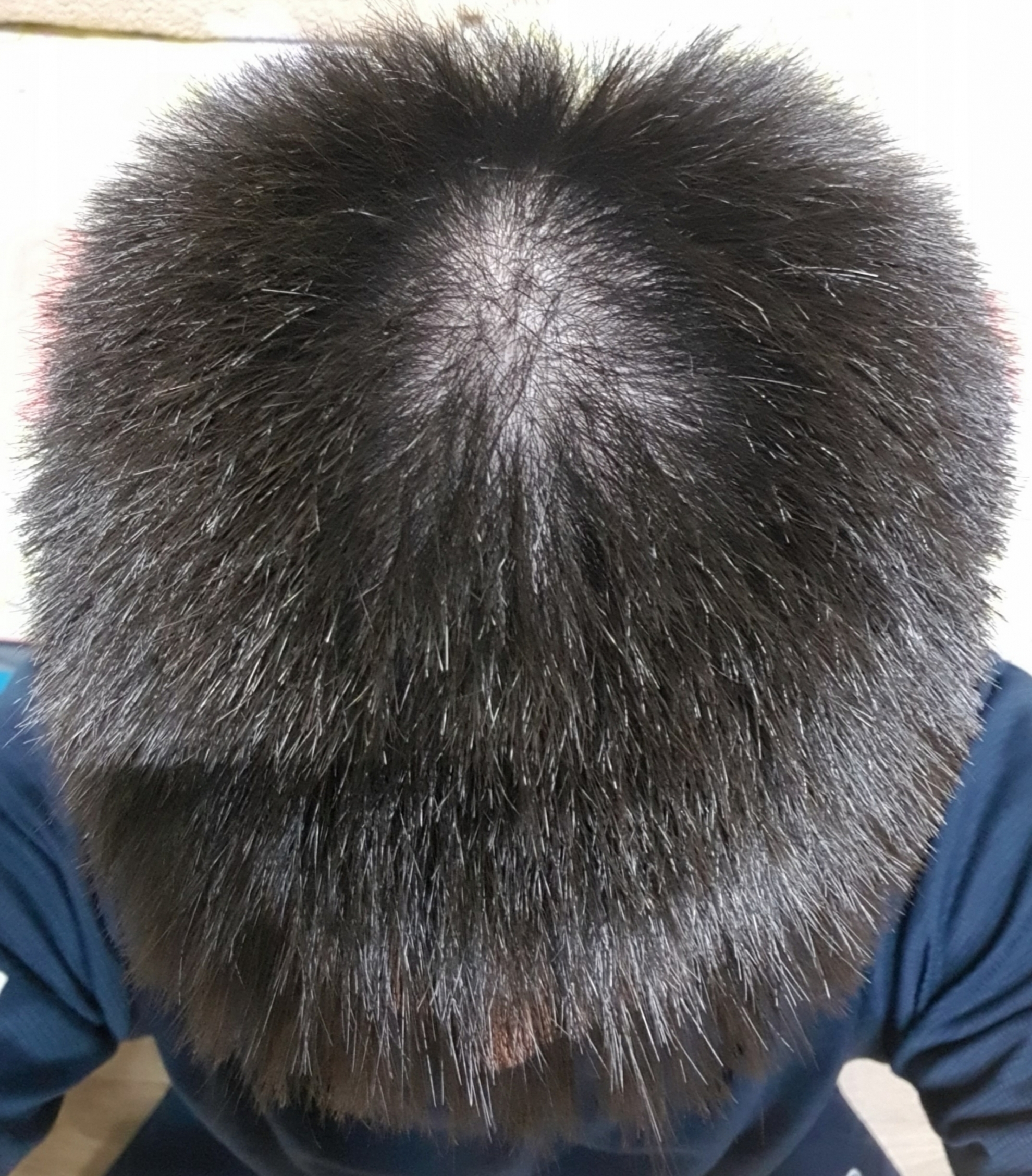 <毛髪が植毛>20代前半から半ばの大学生の頃からM字が深く掘り起こされ、植毛を考え、その後、いくつかの植毛形成外科で訪問見積もりの相談を受けました。ところが、40になってようやく宿願事業(?)を実践しましたね。長い連休の前日である10月2日に早めに予約をしておき、ニューヘアーで非切開完全剃髪方式で植毛手術をしました。下は植毛前の写真です。 向かい風が額に向かって吹くと、間違いなくハゲであることが明らかになりました < 毛包株>1300毛包と1600毛包の間で悩みました。初めて相談を受けた時は、実は1,300毛包だけにするつもりでした。実は私は幼少時代から額が少しM字だったので、あまりにも大きな変化を週とすると不自然になりそうだったんです。しかし、簡単な手術でもなく、どうせなら満足度を最大化するために結局1,600毛包を選びました。下記のデザインが手術当日に描いていただいた1,600毛包基準の絵です。 既存の髪がある重ね合わせ部分を考慮して描いてくださいましたね。 <手術方式>私も会社員ですが、長い連休を利用して完全剃髪方式を選びました。部分削髪、無削髪に比べて安いからでもありますが、手術後の自宅での管理が楽だと思いまして。(もちろん、連休が過ぎて会社に復帰した時、職場の同僚たちの反応と後遺症が怖いです。(泣)頭は手術室でバリカンで果敢に押してくれました。 それでも完全なはげ頭ではなく、2mmくらいは残してくださったようですその後、手術台に伏せて後頭部から株を採取するのに2時間半かかり、昼食を短く食べた後、空いた額に再び移植するのに3時間ほどかかりました。クリニックに入って出るまでに、相談、案内、昼食などを含めて約7時間かかりました。元々は移植する時にスマホや本が見られるということで、野心的に本も一冊持って行ったのですが、手術室の照明がまぶしくて簡単ではありませんでした。慣れたらスマホや手術台の前に設置されているモニターで映像視聴はできそうだったのですが、私はただ目をつぶってじっとしていました。 たまに居眠りしたりもしました。手術は麻酔以外は大した痛みはありませんでした。ただ採取部位と移植部位の麻酔の時は結構痛いです。 ただ「チクチク」するレベルではありません。もちろん、我慢できる程度ではあるが、これが数分続くものだから…··· 採取部位の麻酔が終わって、その後移植部位の麻酔をする時に特に怖かったです移植の途中、株が多少足りず追加で採取しましたが、結果的にもう少し多く1,675毛包を移植してもらうことができました。<手術1日目(翌日)>手術後も特に痛みはなく、後頭部の採取部位だけたまにヒリヒリする感じがします。頭がこうだから外出は難しいですが、日常生活に支障をきたすほどの不便さはほとんどありません。そして手術1日目の翌日には来院してシャンプーする方法を学び、高圧酸素治療、レーザー治療など後続ケアを受けました。1日目に初めて髪を洗う時、後頭部の採取部位がとても痛かったです。しかし、1日目の夕方に家で洗う時は一段と良くなり、2日目にはもっと良くなりました。1日目の状態は下記の写真と同じです。 <手術3日目>最後に今朝撮った写真も載せて見ます。 今朝起きて、うっかり移植部位に触れてしまいました。 血が少し出ましたそれでも幸いなのは、額のヘアラインの一番端の隅なので、失っても傷みにくい部位でした。手術後しばらくは移植部位を絶対に触ってはいけません。 そんなに気をつけると言ったのに、特に朝に夢うつつの時に一番気をつけないといけませんね。まだ移植部位、採取部位ともに赤みはたくさん残っていますが、ゆっくり徐々に薄くなっているようです。もうすぐショックロスを経験しますが、うまく乗り切って、来年の秋夕の時は向かい風の前でも堂々として、どこでも堂々と頭をもたげて歩くことができるでしょう。手術前の相談、手術当日、そして手術後1~2日目のケアまで、本、その過程で満足できました。 親切で細心に応対し、治療してくださったニューヘアー、キム·ジンオ院長と看護師など、本、すべての職員の方々に感謝いたします。
