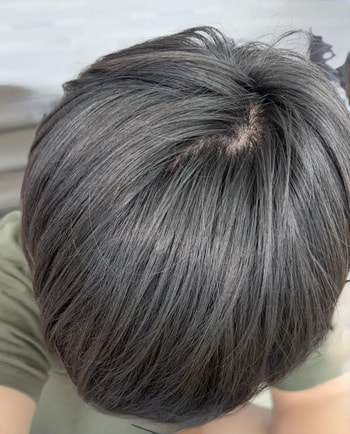 いつからか頭頂部の方がだんだん薄くなるのが鏡を見るたびにとても気になるんです。 前髪やMM字、全部頭頂部は本人が見るより周りの人が先に気づく場合が多いので、避けるよりぶつかった方がいいと思い、勇気を出して病院のクリニック談を受けてみました。 相談前に撮った写真を拡大してみたら、思ったより面積がかなり広く、全体的に髪の毛が薄くて密度が低いとおっしゃっていました。 院長が頭皮の状態を詳しく見ながら、頭頂部の方は生着率自体は良い方ですが、面積が広い場合には2000毛だけでは考える豊かな感じを出すのが難しいと説明してくれました。 最初は2000本だと結構多いんじゃないかと思ったんですが、実際には頭頂部全体をカバーするには足りないかもしれないとおっしゃっていました。 そして決定的に、私の後頭部の状態が少し薄くて密度が低いので、あまりにも無理に多くの量を採取するのは難しいかもしれないとおっしゃいました。 それで院長がおすすめしてくださった方法が、頭頂部2000毛の移植と毛包幹細胞治療の並行でした。 毛包幹細胞治療は、既存の毛髪の成長環境を改善し、移植された毛株、生着を助ける役割をするそうです。つまり、移植をしながらも残っている髪の毛を最大限生かす方向で治療を並行するのです。 相談の中で一番良かったのは、単にもっとたくさん植えようというのではなく、私の毛髪状態と頭皮環境を考慮して現実的な方法を提示してくださったという点でした むやみに大量を植えるより、生着率と毛質の改善を一緒に考慮するのが結果的にはるかに自然で効率的だという説明が理解できました そのように植毛、毛包幹細胞の注射治療を受けることになり、すでに治療を始めて1年が経ちました。 治療を受ける時、髪がいつ上がってくるのかと思いながら毎日鏡だけ見ていましたが、1年が経つとこんなにぎっしりした髪になって改めて嬉しいです