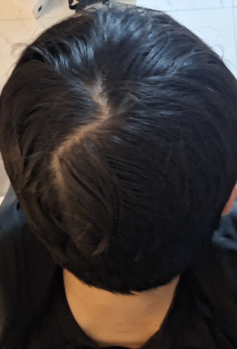 手術前おでこが広くなって分け目に乗る時、とても空いて見えるのが大きなストレスでした術後 ✔️ヘアライン:ラインが整っていてきれいに仕上がっています!✔️分け目:密度がさらに高くなり、頭皮が透けないようによく満たされました♥