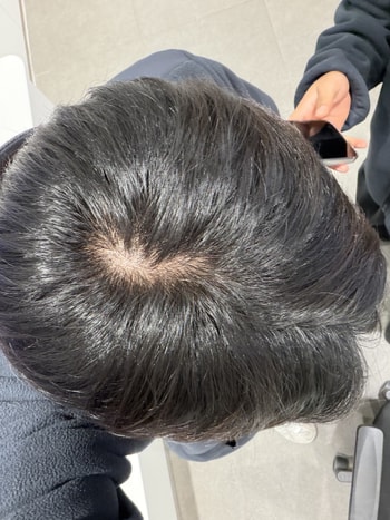 いつからか頭頂部の方がだんだん薄くなるのが鏡を見るたびにとても気になるんです。 前髪やMM字、全部頭頂部は本人が見るより周りの人が先に気づく場合が多いので、避けるよりぶつかった方がいいと思い、勇気を出して病院のクリニック談を受けてみました。 相談前に撮った写真を拡大してみたら、思ったより面積がかなり広く、全体的に髪の毛が薄くて密度が低いとおっしゃっていました。 院長が頭皮の状態を詳しく見ながら、頭頂部の方は生着率自体は良い方ですが、面積が広い場合には2000毛だけでは考える豊かな感じを出すのが難しいと説明してくれました。 最初は2000本だと結構多いんじゃないかと思ったんですが、実際には頭頂部全体をカバーするには足りないかもしれないとおっしゃっていました。 そして決定的に、私の後頭部の状態が少し薄くて密度が低いので、あまりにも無理に多くの量を採取するのは難しいかもしれないとおっしゃいました。 それで院長がおすすめしてくださった方法が、頭頂部2000毛の移植と毛包幹細胞治療の並行でした。 毛包幹細胞治療は、既存の毛髪の成長環境を改善し、移植された毛株、生着を助ける役割をするそうです。つまり、移植をしながらも残っている髪の毛を最大限生かす方向で治療を並行するのです。 相談の中で一番良かったのは、単にもっとたくさん植えようというのではなく、私の毛髪状態と頭皮環境を考慮して現実的な方法を提示してくださったという点でした むやみに大量を植えるより、生着率と毛質の改善を一緒に考慮するのが結果的にはるかに自然で効率的だという説明が理解できました そのように植毛、毛包幹細胞の注射治療を受けることになり、すでに治療を始めて1年が経ちました。 治療を受ける時、髪がいつ上がってくるのかと思いながら毎日鏡だけ見ていましたが、1年が経つとこんなにぎっしりした髪になって改めて嬉しいです