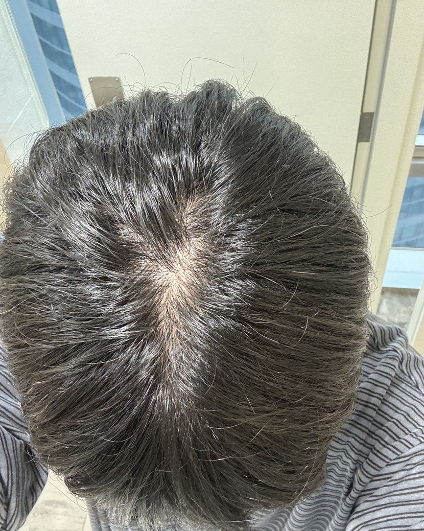 いつからか頭頂部の方がだんだん薄くなるのが鏡を見るたびにとても気になるんです。 前髪やMM字、全部頭頂部は本人が見るより周りの人が先に気づく場合が多いので、避けるよりぶつかった方がいいと思い、勇気を出して病院のクリニック談を受けてみました。   相談前に撮った写真を拡大してみたら、思ったより面積がかなり広く、全体的に髪の毛が薄くて密度が低いとおっしゃっていました。 院長が頭皮の状態を詳しく見ながら、頭頂部の方は生着率自体は良い方ですが、面積が広い場合には2000毛だけでは考える豊かな感じを出すのが難しいと説明してくれました。   最初は2000本だと結構多いんじゃないかと思ったんですが、実際には頭頂部全体をカバーするには足りないかもしれないとおっしゃっていました。 そして決定的に、私の後頭部の状態が少し薄くて密度が低いので、あまりにも無理に多くの量を採取するのは難しいかもしれないとおっしゃいました。   それで院長がおすすめしてくださった方法が、頭頂部2000毛の移植と毛包幹細胞治療の並行でした。 毛包幹細胞治療は、既存の毛髪の成長環境を改善し、移植された毛株、生着を助ける役割をするそうです。つまり、移植をしながらも残っている髪の毛を最大限生かす方向で治療を並行するのです。   相談の中で一番良かったのは、単にもっとたくさん植えようというのではなく、私の毛髪状態と頭皮環境を考慮して現実的な方法を提示してくださったという点でした むやみに大量を植えるより、生着率と毛質の改善を一緒に考慮するのが結果的にはるかに自然で効率的だという説明が理解できました   そのように植毛、毛包幹細胞の注射治療を受けることになり、すでに治療を始めて1年が経ちました。 治療を受ける時、髪がいつ上がってくるのかと思いながら毎日鏡だけ見ていましたが、1年が経つとこんなにぎっしりした髪になって改めて嬉しいです
