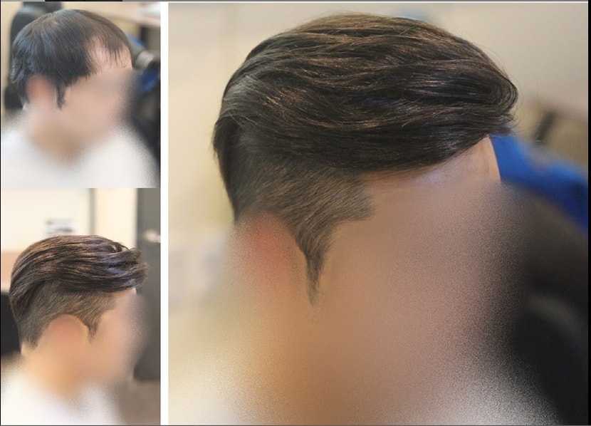 * スリックバックスタイルで最も重要な点は額ラインのパターンですが年齢に合わせて自然な形になるようにするのが