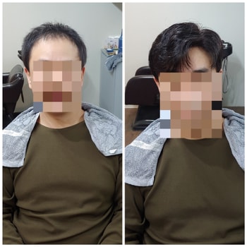 こんにちは!! 植毛4ヶ月体験談です。 私はマンモスヘアラインクリニックヘアライン医院の釜山店で植毛を受けました。脱毛タイプはM字で、今は手術から4カ月ほど経ちました。特に代表院長がすべてスリット移植をしてくださって、 そのおかげで皆さんがよく定着していてとても満足度が高いです!! 経過後記:1ヶ月体験談を残すときと比べて、時間が早く過ぎたような気がします。 それだけ不便なく、日常への復帰が非常に早く行われたという気がします。 手術初期と違ってシャンプーなど洗うときも全然不便がなく、外出するときも気になったりする部分がほとんどないようです。 M字部分の毛もしっかりと根付いているように感じられ、植毛に対する満足度が非常に高いです! :) これからもっと時間が経てば、モドルが今よりも自然に定着し、そうすればスタイリングの幅ももっと広がると思います。 ありがとうございます。