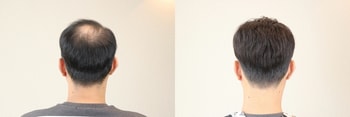 いつからか頭頂部の方がだんだん薄くなるのが鏡を見るたびにとても気になるんです。 前髪やMM字、全部頭頂部は本人が見るより周りの人が先に気づく場合が多いので、避けるよりぶつかった方がいいと思い、勇気を出して病院のクリニック談を受けてみました。 相談前に撮った写真を拡大してみたら、思ったより面積がかなり広く、全体的に髪の毛が薄くて密度が低いとおっしゃっていました。 院長が頭皮の状態を詳しく見ながら、頭頂部の方は生着率自体は良い方ですが、面積が広い場合には2000毛だけでは考える豊かな感じを出すのが難しいと説明してくれました。 最初は2000本だと結構多いんじゃないかと思ったんですが、実際には頭頂部全体をカバーするには足りないかもしれないとおっしゃっていました。 そして決定的に、私の後頭部の状態が少し薄くて密度が低いので、あまりにも無理に多くの量を採取するのは難しいかもしれないとおっしゃいました。 それで院長がおすすめしてくださった方法が、頭頂部2000毛の移植と毛包幹細胞治療の並行でした。 毛包幹細胞治療は、既存の毛髪の成長環境を改善し、移植された毛株、生着を助ける役割をするそうです。つまり、移植をしながらも残っている髪の毛を最大限生かす方向で治療を並行するのです。 相談の中で一番良かったのは、単にもっとたくさん植えようというのではなく、私の毛髪状態と頭皮環境を考慮して現実的な方法を提示してくださったという点でした むやみに大量を植えるより、生着率と毛質の改善を一緒に考慮するのが結果的にはるかに自然で効率的だという説明が理解できました そのように植毛、毛包幹細胞の注射治療を受けることになり、すでに治療を始めて1年が経ちました。 治療を受ける時、髪がいつ上がってくるのかと思いながら毎日鏡だけ見ていましたが、1年が経つとこんなにぎっしりした髪になって改めて嬉しいです