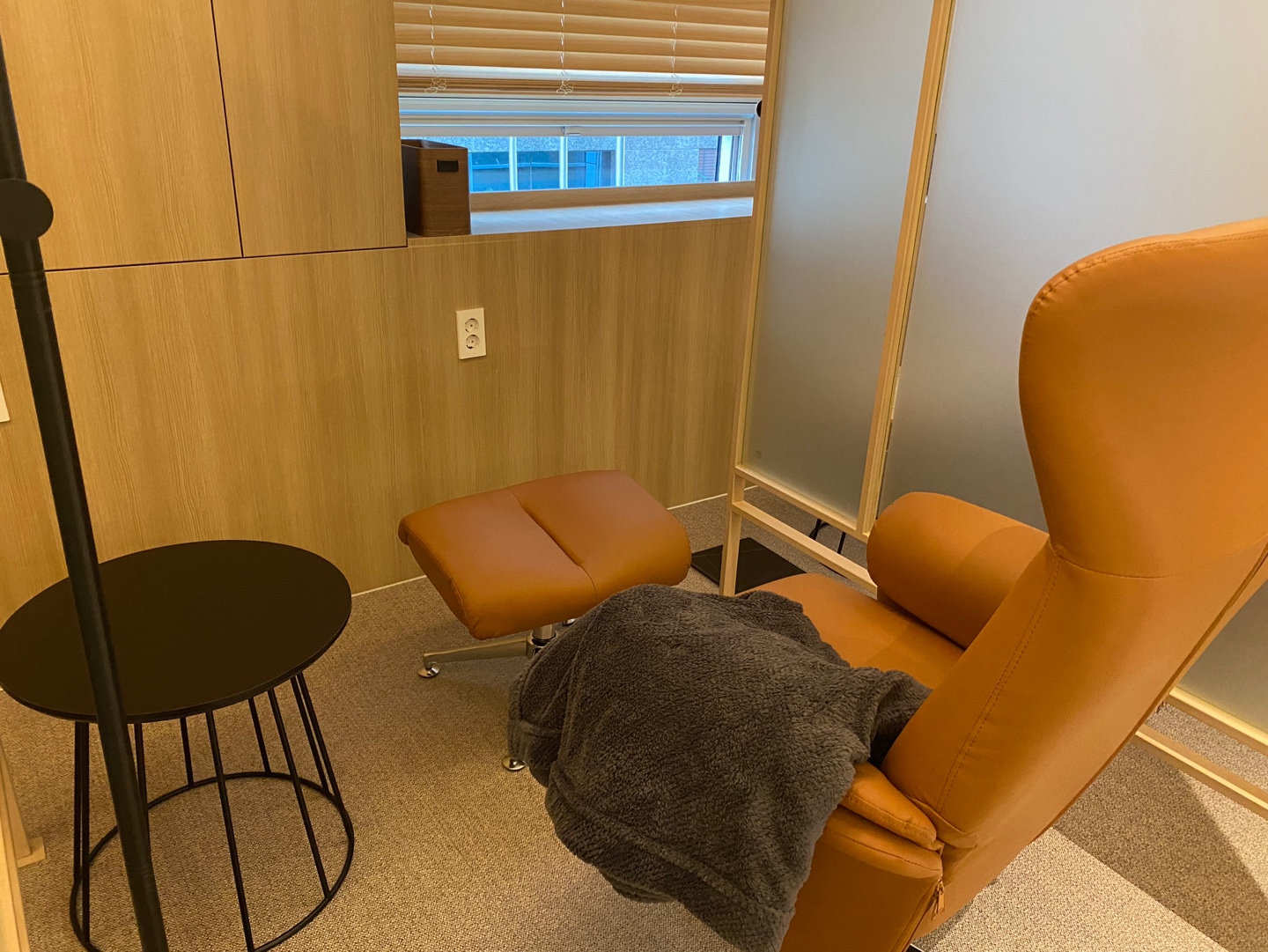 別の部屋で待機しました。 誰かに会わずに一人で楽に両足を伸ばして待つことができましたね。