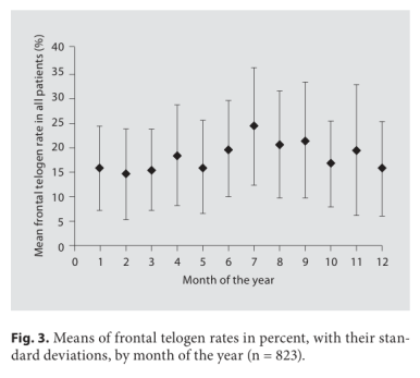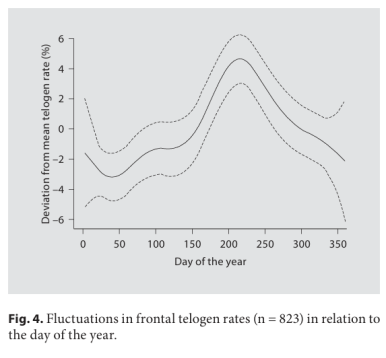 6년 동안 건강한 여성 823명을 대상으로 머리카락의 휴지기 비율을 조사했습니다.