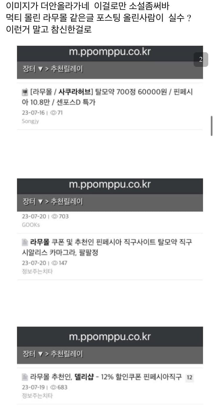 정보주는치타 쫀띄기 둘 모여몰 팝업창 캡쳐해서 뽐뿌에 먹티고 가짜고 글써서 12월1월거니 무작위로골라 삼천만원 내기하자고 공개적으로 말해도 피해다니며 먹티라고 글만쓰고다닙니다 물량이딸리지만 다른업체들처럼 배송안보내고 비싸게 팔거나 하지않습니다