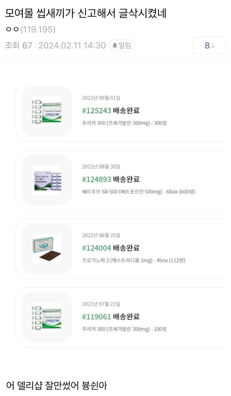 모여몰 배송받은사람 없다는데 먹티아니에요 (99.99% ) 고객아님