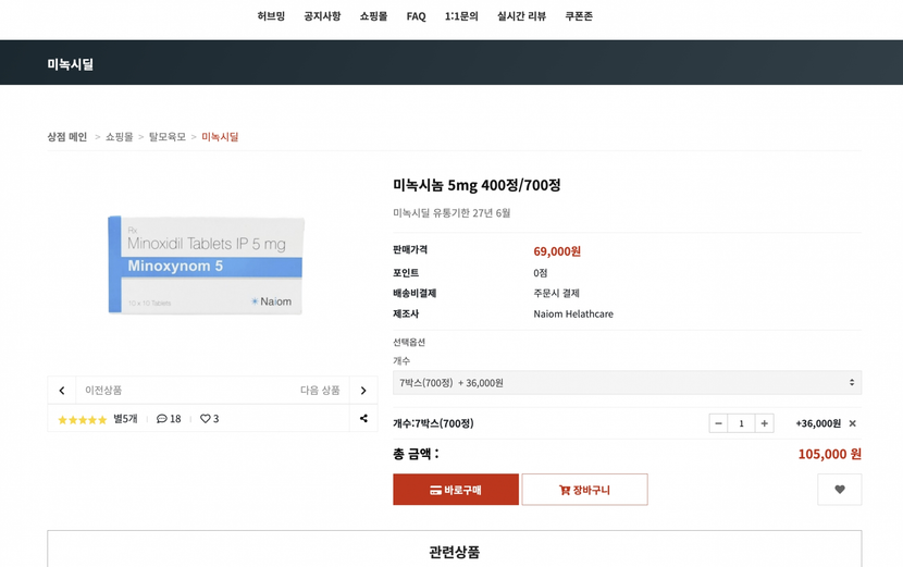 미녹시딜 직구 찾아보다가 허브밍 직구를 찾게 되었습니다.