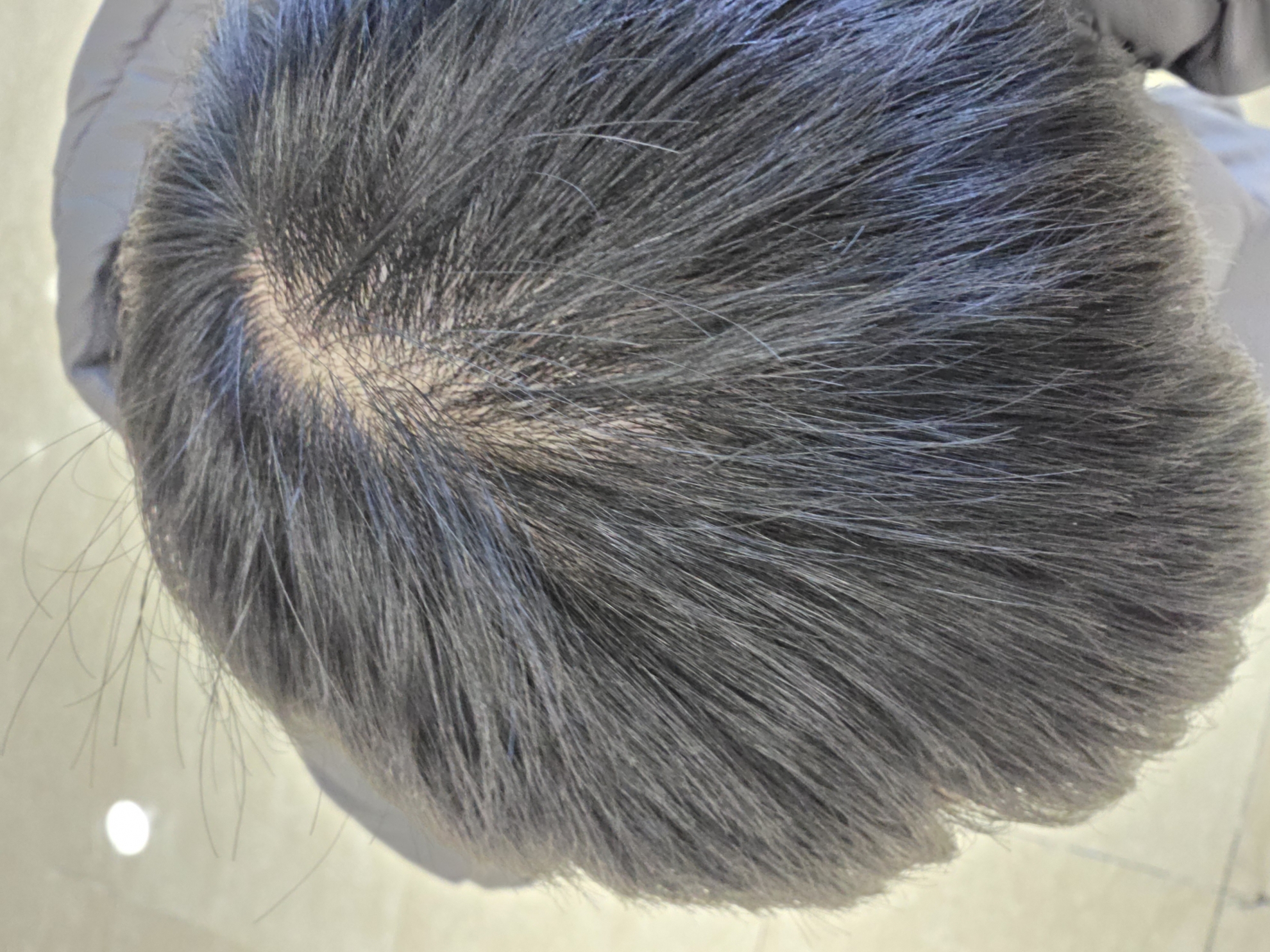 언제부터인가 정수리 쪽이 점점 휑해지는 게 거울 볼 때마다 너무 신경 쓰이더라고요. 앞머리나 M자보다 정수리는 본인이 보기보다 주변 사람들이 먼저 알아차리는 경우가 많다 보니 피하는 것보다 부딪히는 게 낫겠다 싶어서 용기 내서 병원 상담을 받아봤어요.   상담 전에 찍은 사진을 확대해서 보니 생각보다 면적이 꽤 넓었고 전체적으로 모발이 얇아서 밀도가 낮다고 하시더라고요. 원장님께서 두피 상태를 자세히 살펴보시면서 정수리 쪽은 생착률 자체는 좋은 편이지만 면적이 넓은 경우에는 2000모만으로는 생각하는 풍성한 느낌을 내기가 어렵다고 설명해주셨어요.   처음엔 2000모면 꽤 많지 않나 싶었는데 실제로는 정수리 전체를 커버하기엔 부족할 수 있다고 하시더라고요. 그리고 결정적으로 제 후두부 상태가 조금 얇고 밀도가 낮아서 너무 무리하게 많은 양을 채취하기엔 어려움이 있을 수 있다고 하셨어요.   그래서 원장님이 추천해주신 방법이 바로 정수리 2000모 이식과 모낭줄기세포 치료 병행이었어요. 모낭줄기세포 치료는 기존 모발의 성장 환경을 개선하고 이식된 모낭의 생착을 돕는 역할을 한다고 하더라고요 즉 이식을 하면서도 남아 있는 머리카락을 최대한 살리는 방향으로 치료를 병행하는 거죠   상담 중에 가장 좋았던 건 단순히 더 많이 심읍시다가 아니라 제 모발 상태와 두피 여건을 고려해서 현실적인 방법을 제시해주셨다는 점이었어요 무턱대고 많은 양을 심는 것보다 생착률과 모질 개선을 함께 고려하는 게 결과적으로 훨씬 자연스럽고 효율적이라는 설명이 이해가 됐습니다   그렇게 모발이식이랑 모낭줄기세포 주사치료를 받게 됐고 벌써 치료 받기 시작한지 1년이 지났습니다 치료 받을 때 머리 언제 올라오나 하면서 맨날 거울만 들여다봤는데 1년이 지나니 이렇게 빼곡해진 머리가 돼서 새삼 기쁘네요