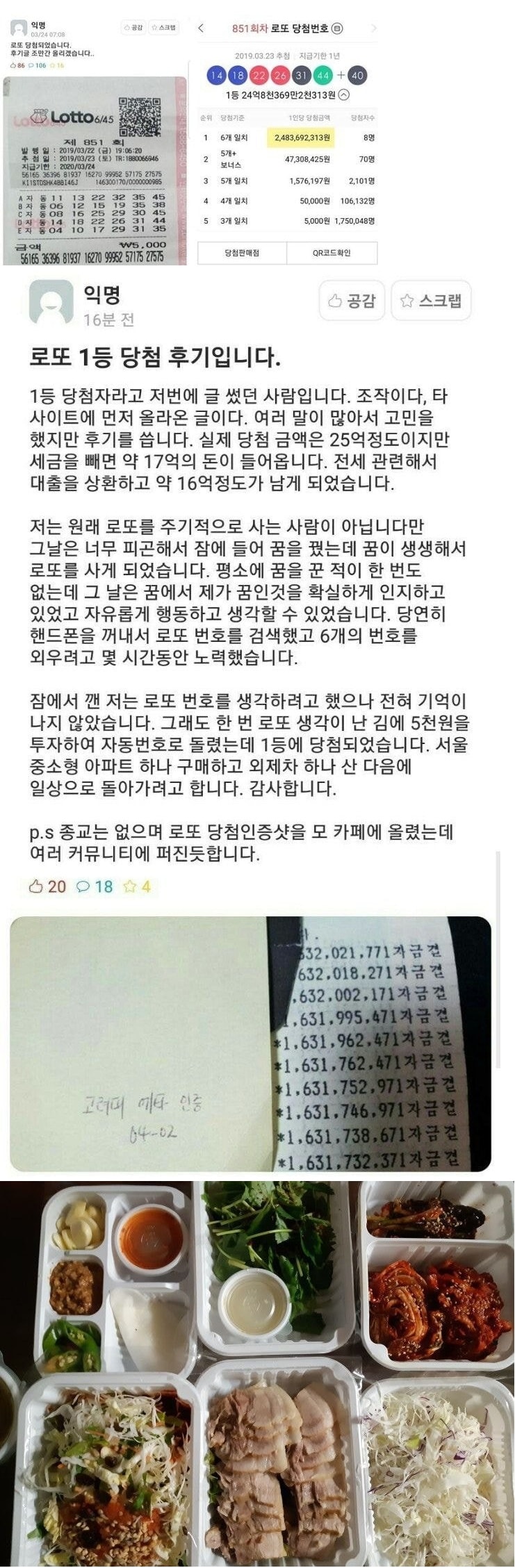 전체[유머&이슈] 25억 로또 1등 (실수령 17억) 당첨되면 제일 먼저 먹고싶은 음식을 말해보자