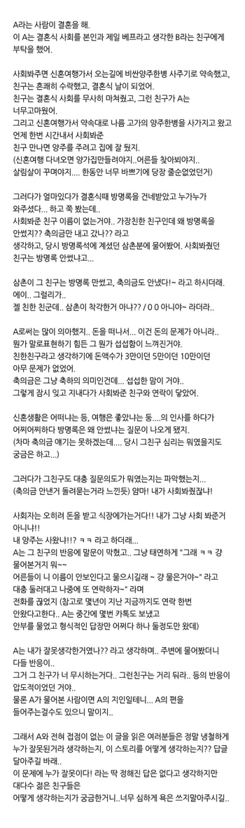 결혼식 사회 봐준 친구가 축의금 안냄 jpg