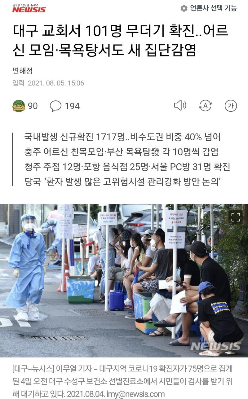 전체[일반잡담] 대구교회 101명 무더기 확진...