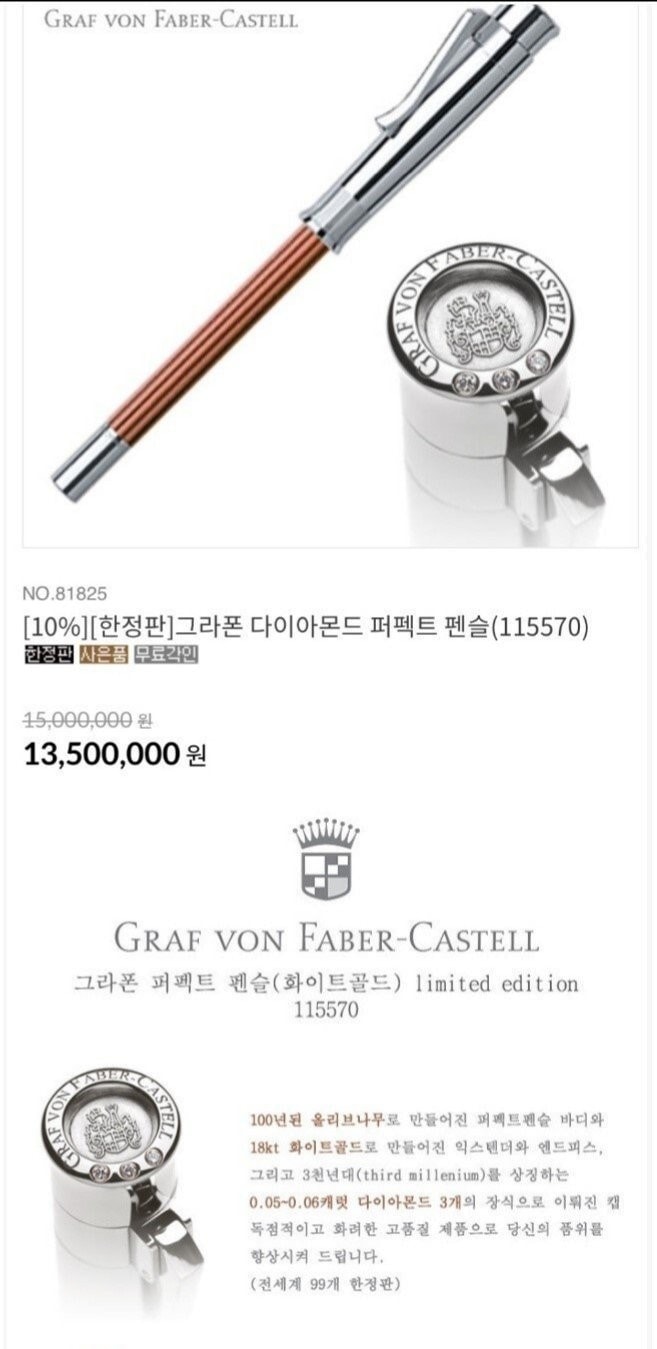 그라뽕빠바까스뗄. 만년필이 80만원정도인데 연필이 저렇게 비싸다니..