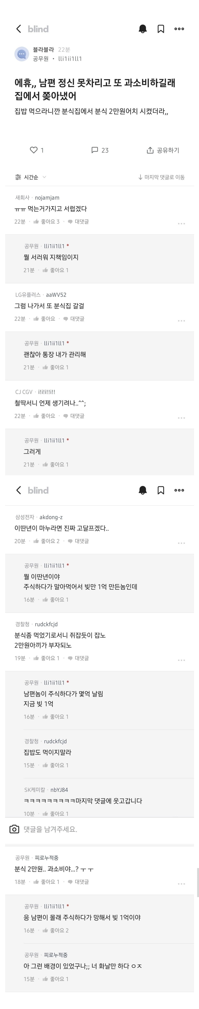 [유머&이슈] 남편이 분식에 2만원 쓴게 화나서 집에서 쫒아낸 아내.jpg