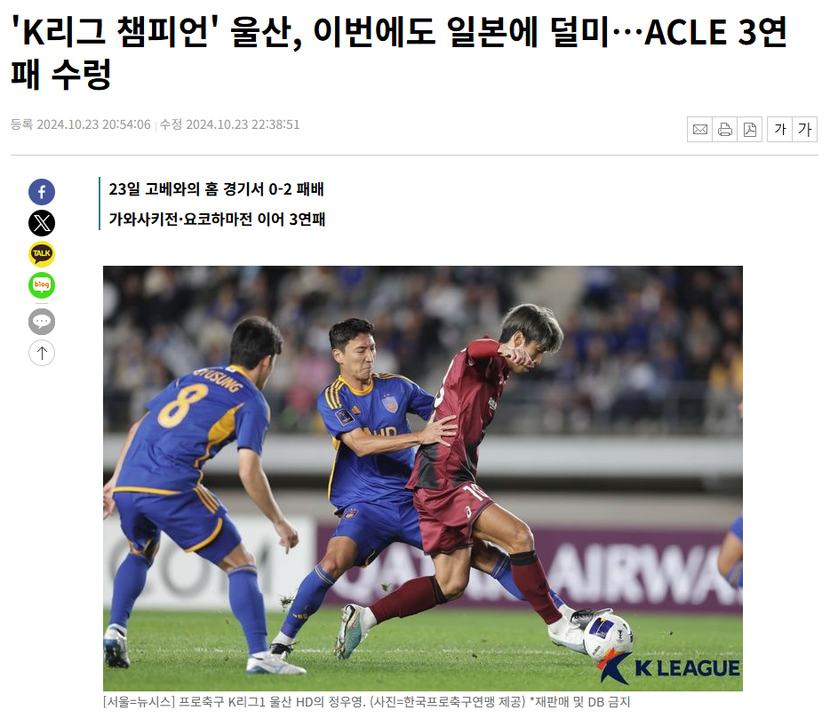 [일반잡담] 울산HD 리그 1위팀이 챔피언스리그 꼴지..