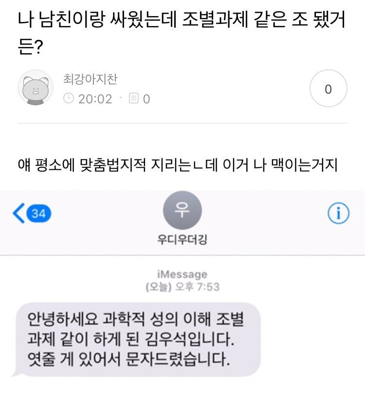 [유머&이슈] 싸운남친이랑 조별과제 같은조가 걸렸습니다 . JPG