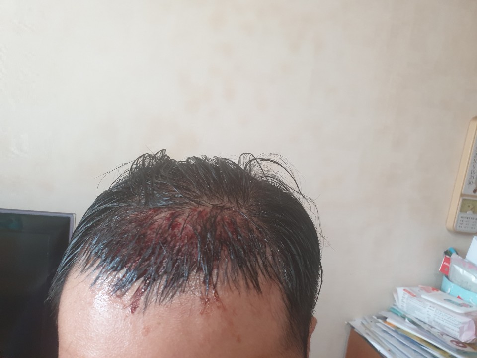 수술 첫날 많은 고민과 생각을 한 끝에 드디어 오늘 뉴헤어에서 모발이식을 하였습니다. 여러가지 선택의 갈림길에 있어서 확실한 결정을 못하고 있었는데 뉴헤어 김진오 원장 선생님의 조언을 듣고 마음의 결정을 내려 드디어 오늘 모발 이식을 하고 왔습니다. 절개 수술을 선택하였는데도 수술중 통증을 거의 느끼지 못할정도로 어느새 절개와 꼬맴까지 끝나 있어서 미리 긴장했던 자신이 쑥스러웠습니다 (속으로). 슬릿 또한 전혀 불편함 없이 선생님들이 사이 사이 불편 사항을 물어봐 주셔서 마음 또한 편안하게 임할 수 있었으며 수술하면 엄청 아플줄 알았는데 여러 선생님들의 말씀처럼 주사 맞는 정도의 아픔만 느끼고 잘 끝냈습니다. 오히려 제일 힘들었던 부분이 오래 동안 누워있었던 부분이랄까 ??? 오후 4시에 끝나 집으로 돌아온 지금도 통증은 별로 없고 수영모를 꽉 끼게 쓴 느낌이랄까 이정도 입니다. 하나 하나 잘 진행되다 보면 좋은 결과를 얻기를 기대하며 원장 선생님께서 가르쳐 주신대로 잘 대처 하고 있습니다 . 낼 병원 방문하여 삼푸와 고압 산소치료 , LLLT 까지 사후 관리를 받으면 훨씬 도움이 되리라 생각됩니다 수술 둘째날 밤새도록 30분 간격으로 생착 스프레이를 뿌리고 (새벽 3시 까지 뿌렸씀) 병원에 방문하여 삼푸 하는 방법을 익혔습니다. 이식부위는 통증이 없었으나 절개 부분은 약간의 통증을 트꼈고 고압 산소 치료는 귀가 살짝 먹먹해 지는 정도의 느낌을 받았고 어떤 사람은 폐쇄 공포증을 느꼈다고 하는데 안에 비상벨까지 있어 안심하고 잘 치료 받았습니다. 삼푸하고 소독하고 연고와 함께 스프레이 까지 바르니 많이 깔끔해 진듯합니다.