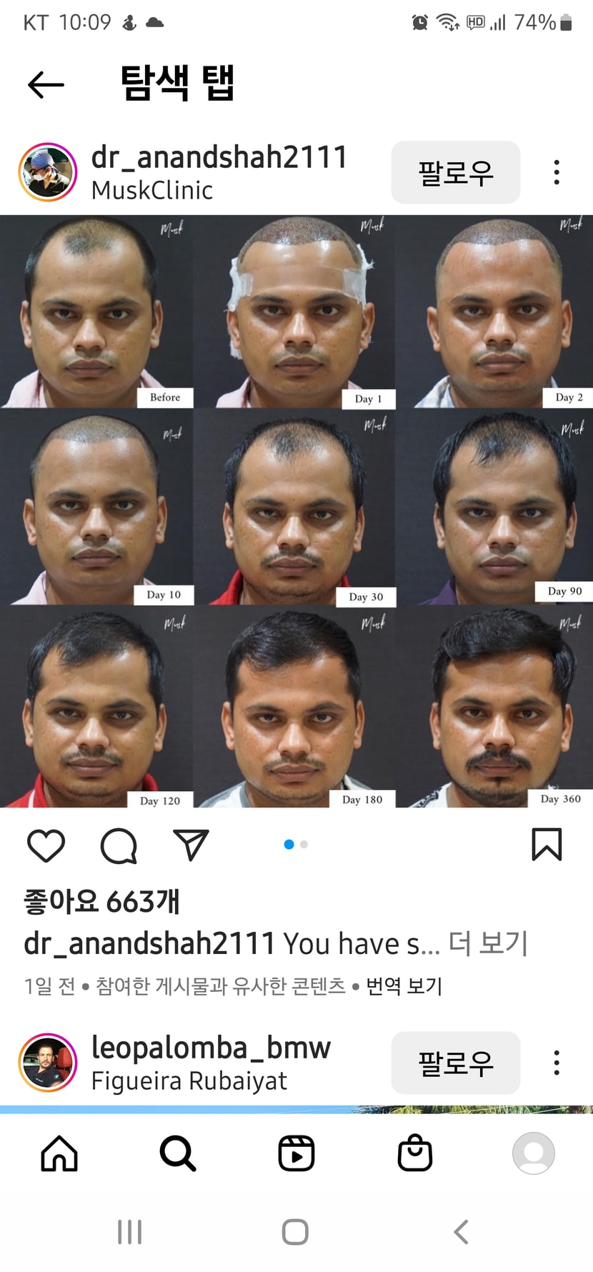 10여년전에 절개로 처음 모발이식을 받았었는데 만족도가 떨어졌었습니다. 오랜기간 재수술을 고려하다가 추석연휴 찬스로 움찬의원에서 비절개 3,500모 재수술 받게되었습니다. 통증도 거의 없었고 만족도가 높더라구요. 21일 지난 현재 슬슬 이식모들이 탈락하고 있지만 시간 잘 지나서 무사히 자라났으면 합니다. 모두 득모하세요!