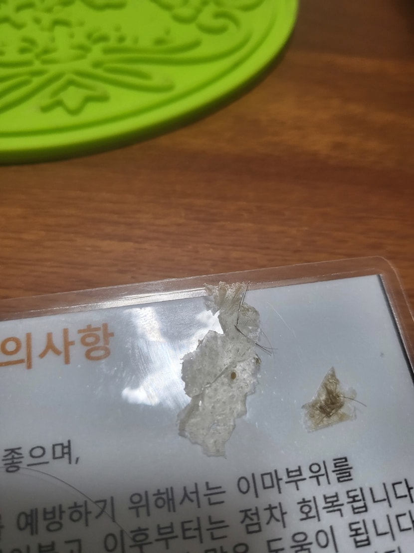 다름이 아니라 첨부한 사진처럼 두피 각질과 머리카락이 모자에 같이 붙어서 나왔는데 자연스러운 현상인가요?
