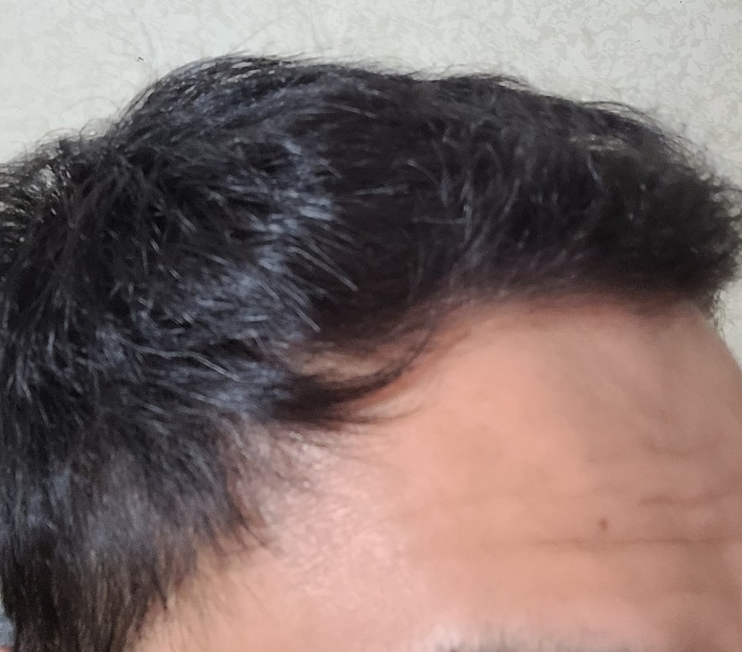 지금은 M자 부위가 안정적으로 채워져서 헤어라인이 또렷해졌고, 머리에 전체적으로 볼륨이 생겼습니다.