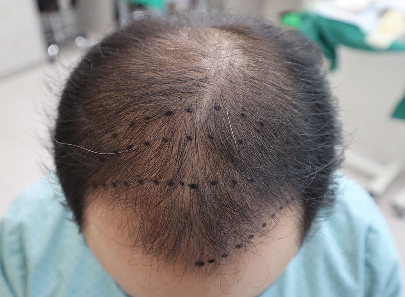 정수리부터 M자까지 전체적으로 머리가 비어 있어서 거울로 머리를