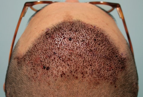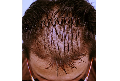 사진에서 보듯이 수술 전에도 기존의 모발이 남아 있어 동반 탈락이 염려 되었으나 대체로 사이사이 이식히 꼼꼼히 잘 되었네요. 사이사이 밀도 보강에 초점을 맞춰 주셨습니다.