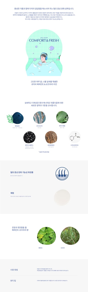 모발과 두피에 물을 충분히 적신 후, 적당량을 덜어 거품을 내 모발과 두피 전체에 사용 후 깨끗이 씻어 냄포함성분