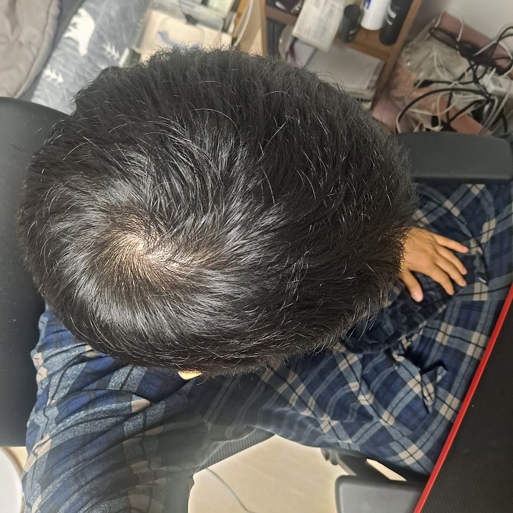 현상태입니다 정수리 부분이 꽉 찼으면 좋겠네요 ㅠ 어려서부터 정수리가 좀 비어 있는게 컴플렉스인데 ㅠ