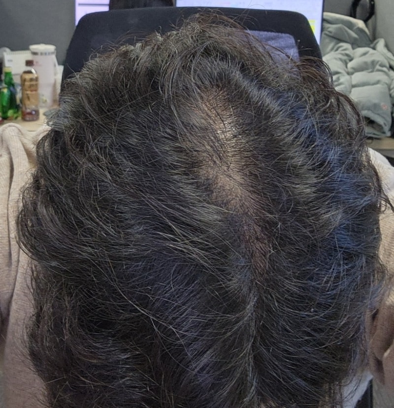언제부터인가 정수리 쪽이 점점 휑해지는 게 거울 볼 때마다 너무 신경 쓰이더라고요. 앞머리나 M자보다 정수리는 본인이 보기보다 주변 사람들이 먼저 알아차리는 경우가 많다 보니 피하는 것보다 부딪히는 게 낫겠다 싶어서 용기 내서 병원 상담을 받아봤어요. 상담 전에 찍은 사진을 확대해서 보니 생각보다 면적이 꽤 넓었고 전체적으로 모발이 얇아서 밀도가 낮다고 하시더라고요. 원장님께서 두피 상태를 자세히 살펴보시면서 정수리 쪽은 생착률 자체는 좋은 편이지만 면적이 넓은 경우에는 2000모만으로는 생각하는 풍성한 느낌을 내기가 어렵다고 설명해주셨어요. 처음엔 2000모면 꽤 많지 않나 싶었는데 실제로는 정수리 전체를 커버하기엔 부족할 수 있다고 하시더라고요. 그리고 결정적으로 제 후두부 상태가 조금 얇고 밀도가 낮아서 너무 무리하게 많은 양을 채취하기엔 어려움이 있을 수 있다고 하셨어요. 그래서 원장님이 추천해주신 방법이 바로 정수리 2000모 이식과 모낭줄기세포 치료 병행이었어요. 모낭줄기세포 치료는 기존 모발의 성장 환경을 개선하고 이식된 모낭의 생착을 돕는 역할을 한다고 하더라고요 즉 이식을 하면서도 남아 있는 머리카락을 최대한 살리는 방향으로 치료를 병행하는 거죠 상담 중에 가장 좋았던 건 단순히 더 많이 심읍시다가 아니라 제 모발 상태와 두피 여건을 고려해서 현실적인 방법을 제시해주셨다는 점이었어요 무턱대고 많은 양을 심는 것보다 생착률과 모질 개선을 함께 고려하는 게 결과적으로 훨씬 자연스럽고 효율적이라는 설명이 이해가 됐습니다 그렇게 모발이식이랑 모낭줄기세포 주사치료를 받게 됐고 벌써 치료 받기 시작한지 1년이 지났습니다 치료 받을 때 머리 언제 올라오나 하면서 맨날 거울만 들여다봤는데 1년이 지나니 이렇게 빼곡해진 머리가 돼서 새삼 기쁘네요