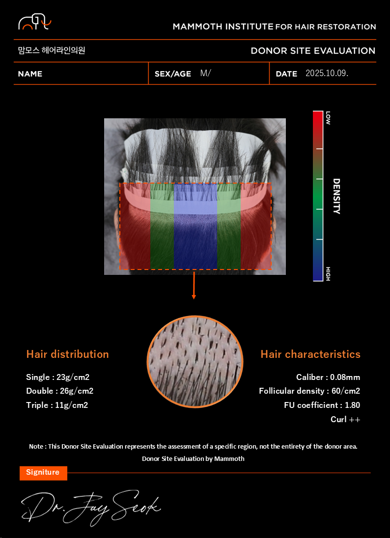 압구정 맘모스헤어라인 비절개 모발이식 후기 (2025.10.09 수술)저는 10월 9일 압구정 맘모스헤어라인에서 비절개 모발이식 수술을 받았습니다.사실 저는 수년 전 이미 절개 방식으로 모발이식을 했지만, 아쉽게도 생착이 잘되지 않아 만족스러운 결과를 얻지 못했습니다.그 이후 절개방식으로 재수술을 했지만 아무런 성과를 얻지못하고 그냥 포기하고 지냈죠.그러다 지인의 소개로 맘모스헤어라인을 알게 되었고,처음에는 과거의 실패 경험 때문에 솔직히 의심이 많았습니다.하지만 석지웅 원장님과 약 2~3시간 정도 진솔한 상담을 나눈 뒤,이 병원과 원장님에 대한 신뢰가 생겨 수술을 결심하게 되었습니다.수술 당일 긴장을 많이 했지만,원장님과 직원분들의 따뜻한 격려 덕분에 마음이 한결 편해졌습니다.먼저 웃음마취(가스마취) 로 시작했는데,호흡을 통해 아주 빠르게 마취가 되어 통증 없이 편안하게 수술이 진행되었습니다.뒷머리 채취 과정에서는 엎드린 자세로 진행했는데,긴장해서 그런지 허리가 조금 뻐근했지만 절실한 마음에 참았습니다.간호사분들이 중간중간 계속 상태를 확인해주셔서 안심이 되었어요.이식 과정에서는 바로 누워 거의 잠든 상태로 편하게 받을 수 있었습니다.중간에 휴식 시간도 있었고, 김밥과 커피까지 챙겨주셔서 세심한 배려가 느껴졌습니다.수술 다음 날에는 석지웅 원장님과 다시 면담 후,직원분께서 샴푸를 도와주셨습니다.현재 수술 후 2주차인데,특별한 통증이나 불편함 없이 잘 회복 중입니다.저는 생착을 위해 영양제와 두타계열 약을 복용했고,건조하지 않도록 가습기를 항상 켜두며 환경 관리에도 신경을 썼습니다.예전에 절개 수술을 받았을 때는 통증과 불편함이 많았는데,이번 비절개 수술은 확실히 회복이 빠르고 편안했습니다.샴푸할 때도 큰 어려움은 없었고,다만 머리 말리는 데 시간이 조금 걸렸다는 점 정도만 있었어요.이제 곧 암흑기가 오고 새로운 머리카락이 자라나기 시작하겠죠.이번에는 좋은 결과를 기대하며 정말 설레는 마음으로 기다리고 있습니다.과거의 실패 경험이 있었기에 더욱 신중했는데,압구정 맘모스헤어라인에서 석지웅 원장님을 만나 수술을 받길 정말 잘한 선택이었다고 생각합니다.수술 전부터 수술 후까지 세심하게 케어해주신원장님과 모든 직원분들께 진심으로 감사드립니다.