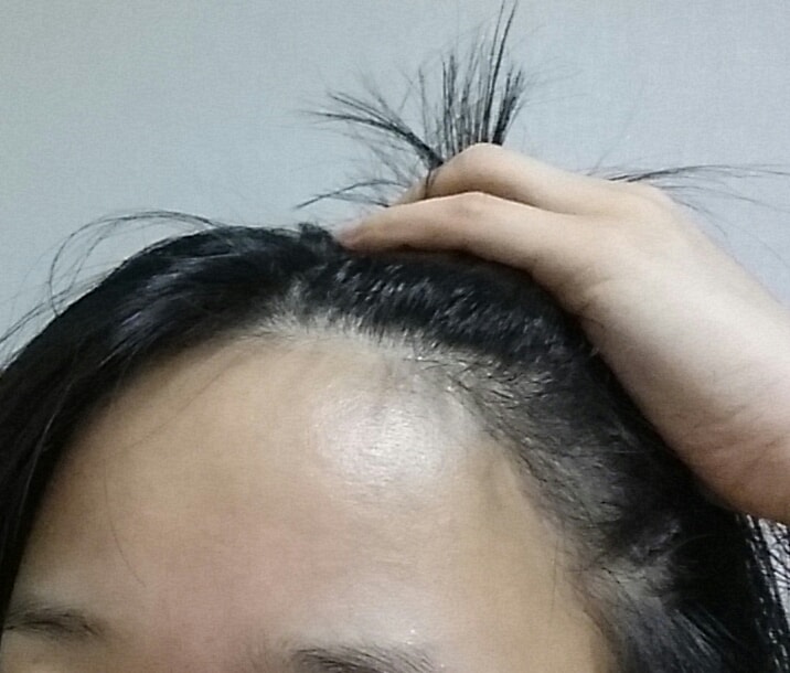 첫 번째 사진은 왼쪽으로 잔머리가 거의 없던 부분이라서 새로나는 머리가 정돈되어 보이지 않아요. 좀 더 길면 정돈되겠죠? 두 번째 사진은 오른쪽으로 잔머리가 좀 있었고, 잔머리 덕분에 머리카락이 방향성을 가지고 정돈되어 보입니다.