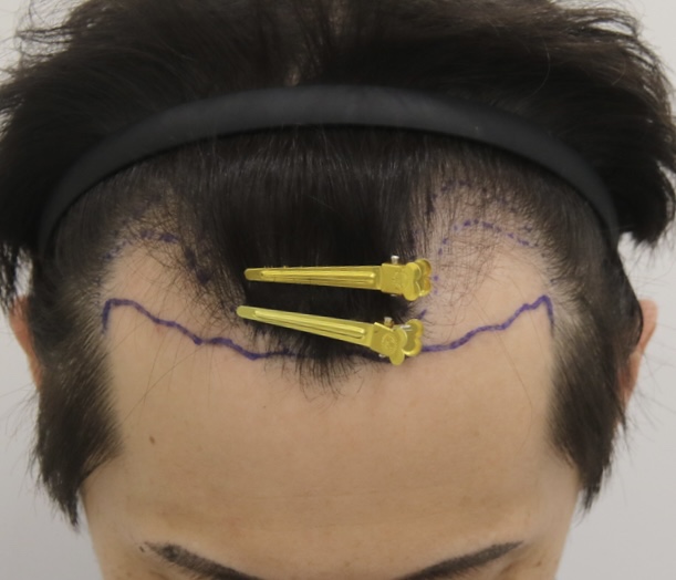 모낭 당 모수도 적고, M자도 너무 깊어서 헤어라인을 내리기보다는 M자를 없애는 것에 중점을 잡았습니다.