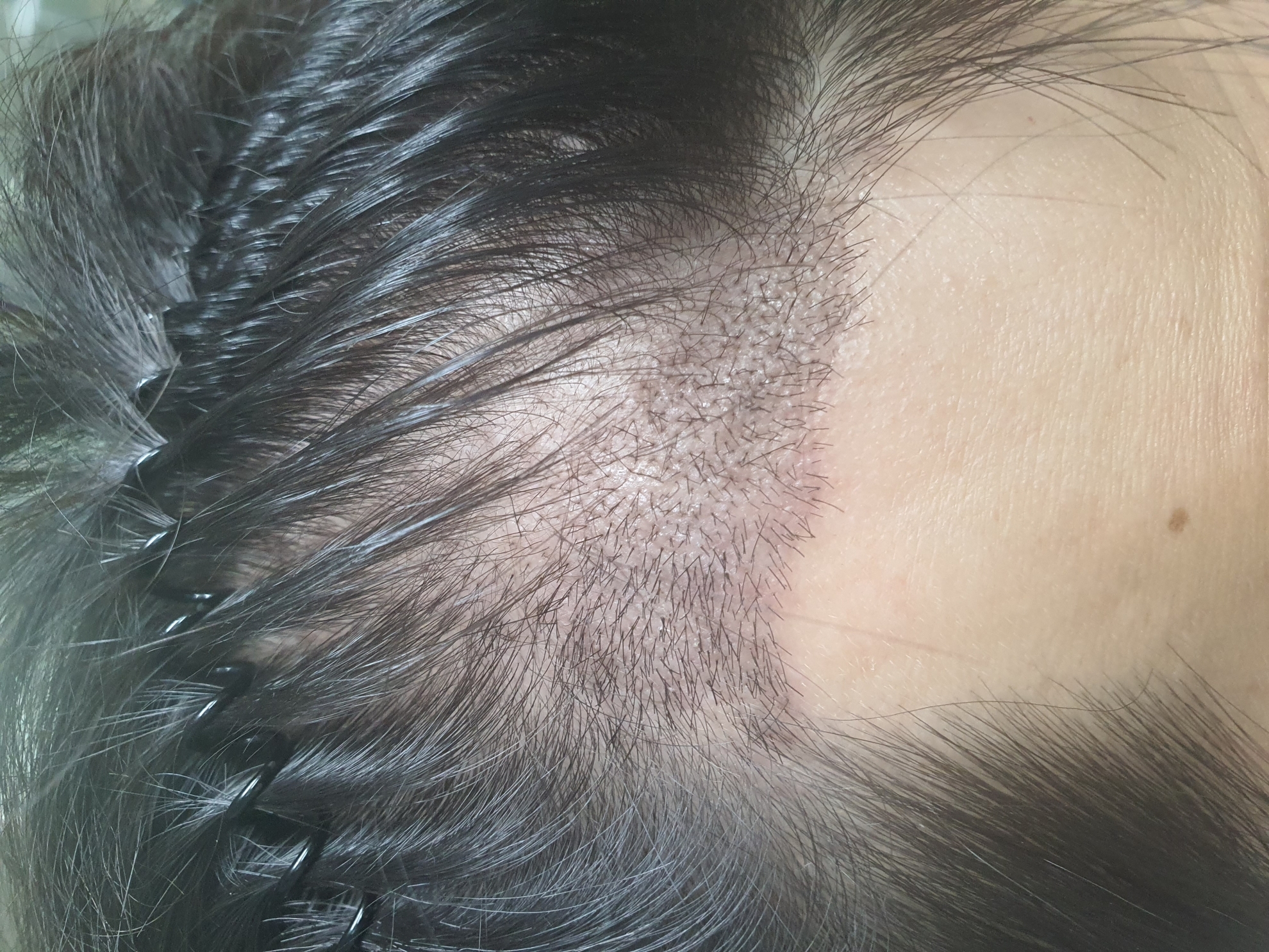 다만 정수리부분은 아직 마취감이 남아 있고, 이식부는 아직 감각이 둔합니다.