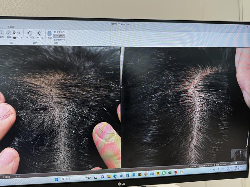 원장님 얘기로는 정수리는 앞머리처럼 효과가 좋지는 않다고 합니다.