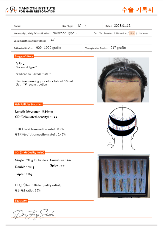 압구정 맘모스헤어라인 / M자모발이식 / 웃음가스마취 / 당일후기